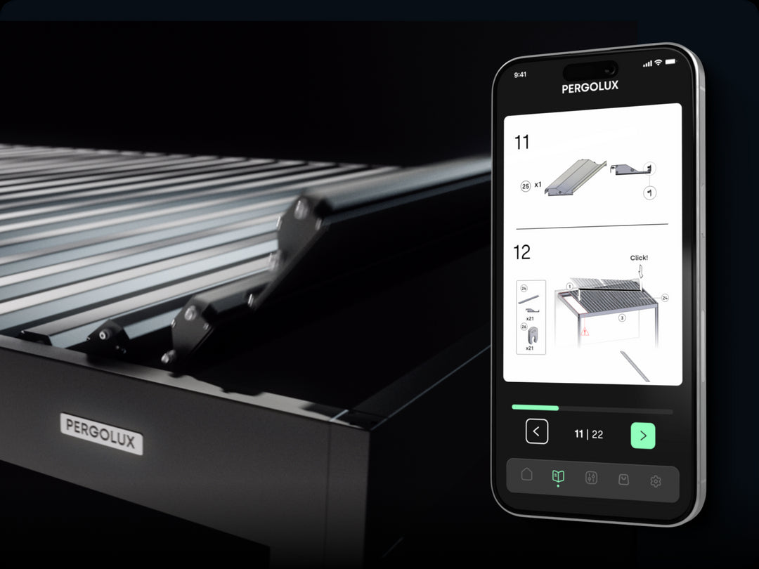 Instale seu produto PERGOLUX com nosso manual digital, acesse nosso Web App para guias com imagens e vídeos detalhados.