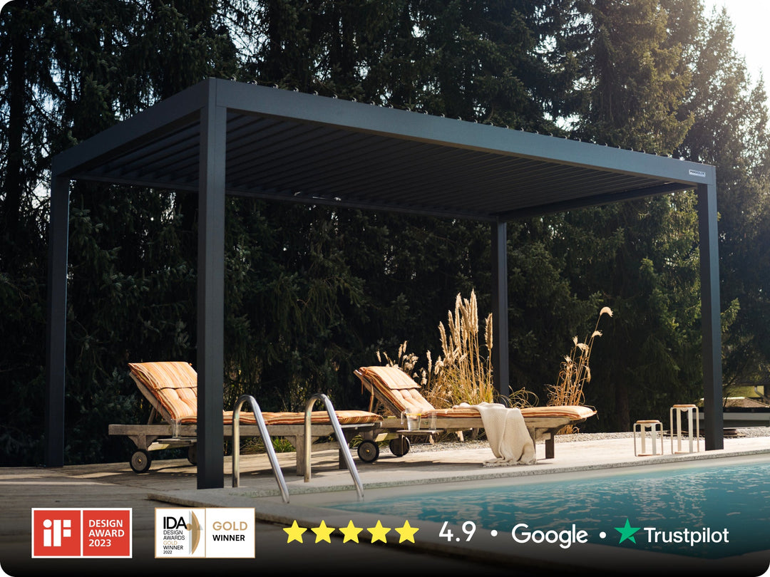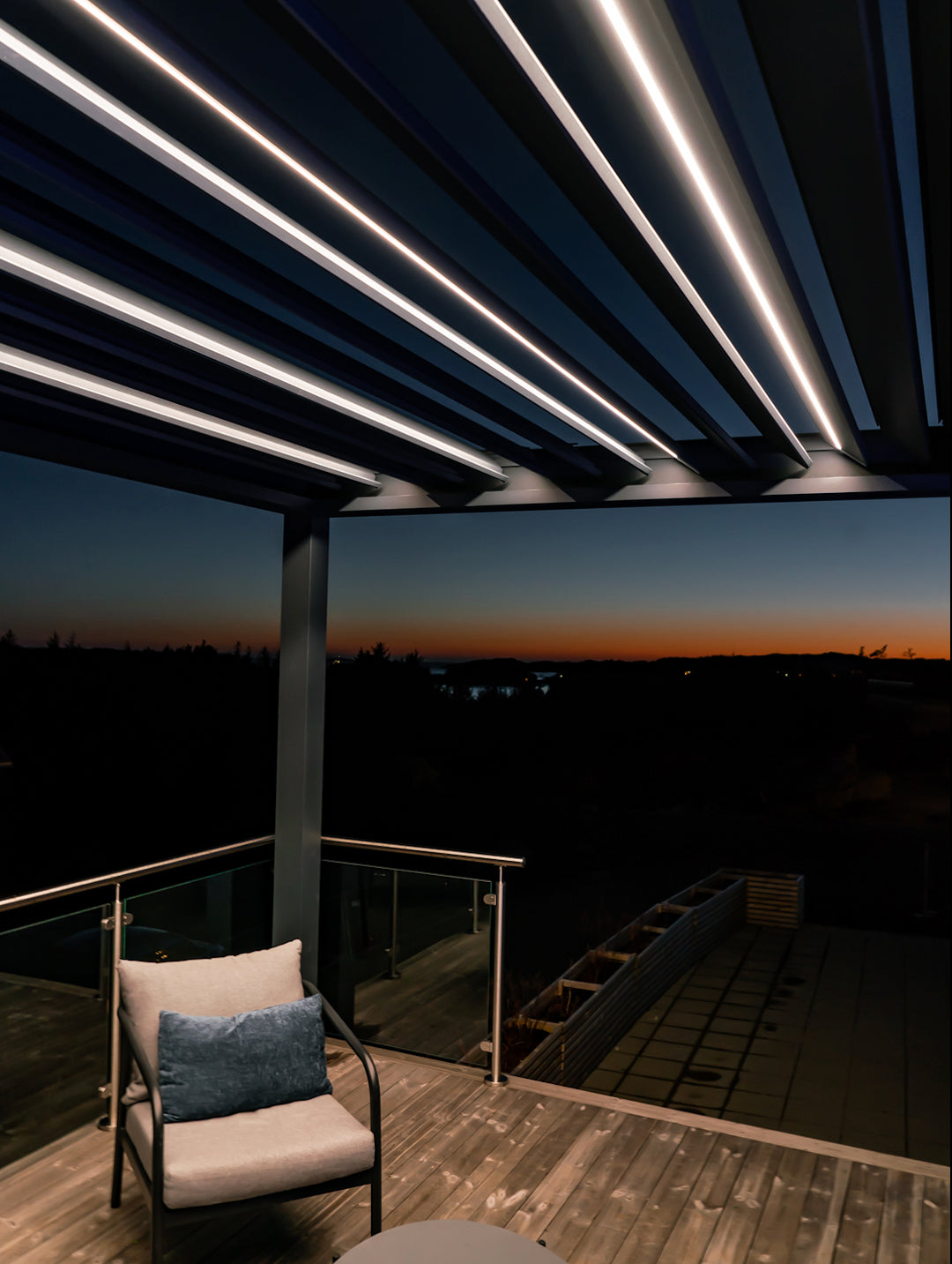PERGOLUX Skydance é a resposta a muitos dos desejos de nossos clientes: design luxuoso, iluminação LED integrada e lâminas ajustáveis automatizadas.